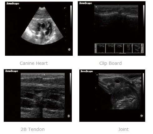 • Specific veterinary transducers: Endocavity, High frequency micro-convex, High frequency phased array