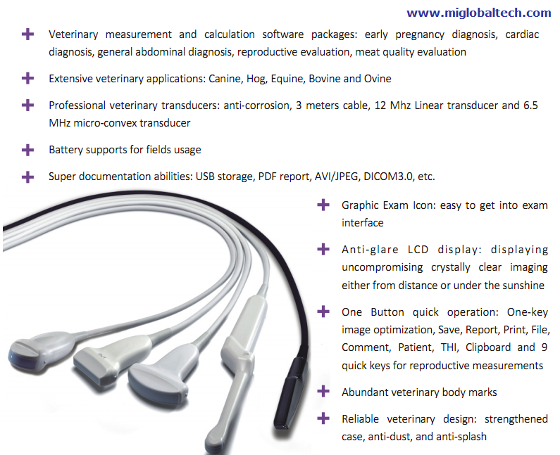 • Specialized veterinary design: anti-dust, anti-splash, three-meter probe cable
